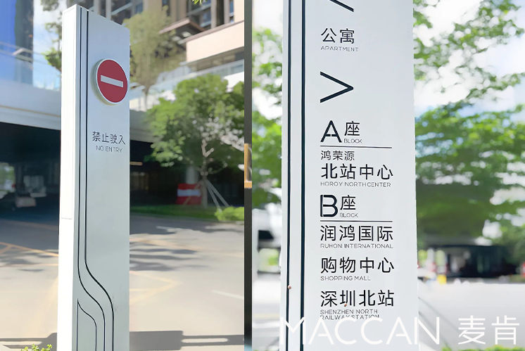 標(biāo)識標(biāo)牌內(nèi)容要具有時代感,易于識別和記憶,在文字、字體、色彩及版面的設(shè)計上有一定的獨(dú)特性,要與周邊環(huán)境相協(xié)調(diào)。經(jīng)濟(jì)性、實(shí)用性、協(xié)調(diào)性、藝術(shù)性等四方面要求相結(jié)合,既便于識別又有較好的藝術(shù)效果。例如麥肯打造的壹方里城市更新標(biāo)識系統(tǒng)項(xiàng)目中,標(biāo)識牌明顯的溫馨、白色調(diào)性更加顯現(xiàn)街區(qū)的現(xiàn)代化特征。簡明線條,會在細(xì)節(jié)里生根發(fā)芽。微弧形的線條替代了硬朗的直線型設(shè)計,整個空間都流動起來。不規(guī)則的非對稱造型讓整個綜合體更具后現(xiàn)代氣質(zhì),極簡的舒適檔次感瞬間來襲。