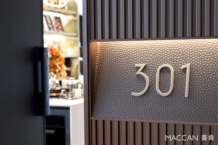 此次標(biāo)識采用鋁板切割立體字工藝,線條利落流暢,造型簡潔大氣。同時,標(biāo)識表面經(jīng)過防指紋處理,可長久保持光潔如新的狀態(tài),即便頻繁觸摸,也能維持精致質(zhì)感。色彩上,亮黑、古銅、槍灰等色調(diào)的運用,盡顯奢華質(zhì)感,精準(zhǔn)契合項目的高品質(zhì)定位,從視覺層面直觀傳遞出項目的高端屬性。